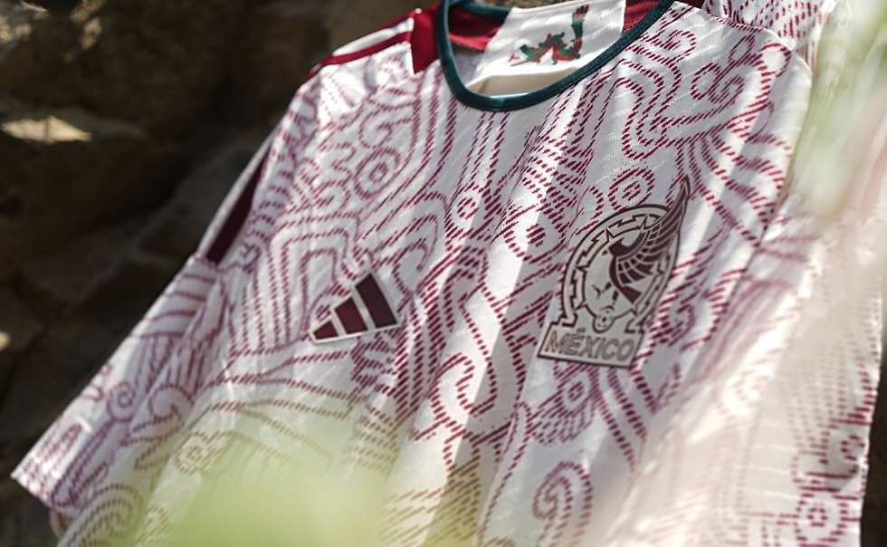 "Inspirado en civilizaciones antiguas. Adidas infundió esta camiseta de visitante de México para jóvenes con arte mixteco y deidades aztecas para invocar el espíritu de lucha necesario para gobernar el mundo del futbol"